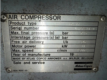 Воздушный компрессор Atlas-Copco GA 11 Elektrische Schroefcompressor 1560 L / min 7.5 Bar